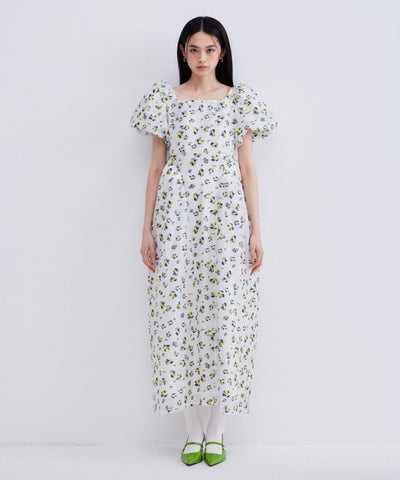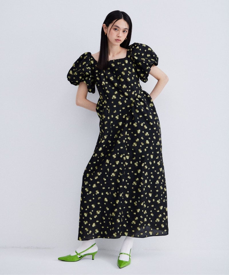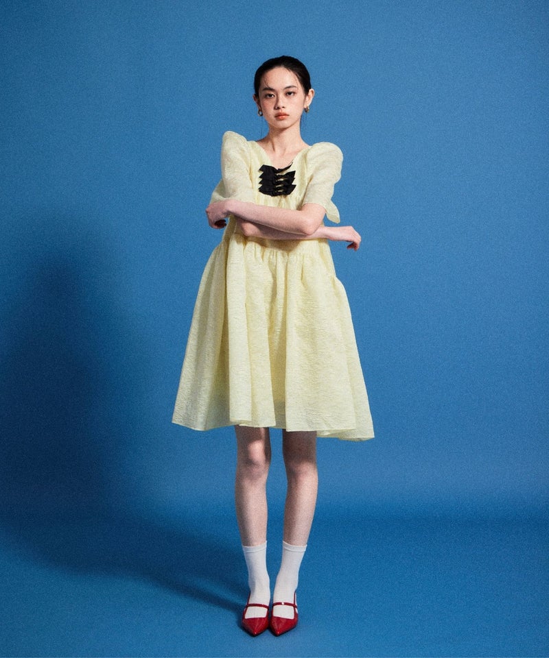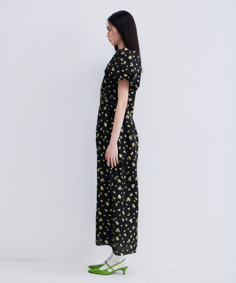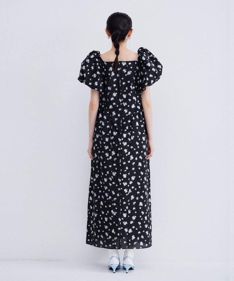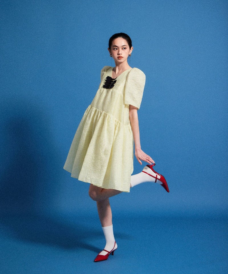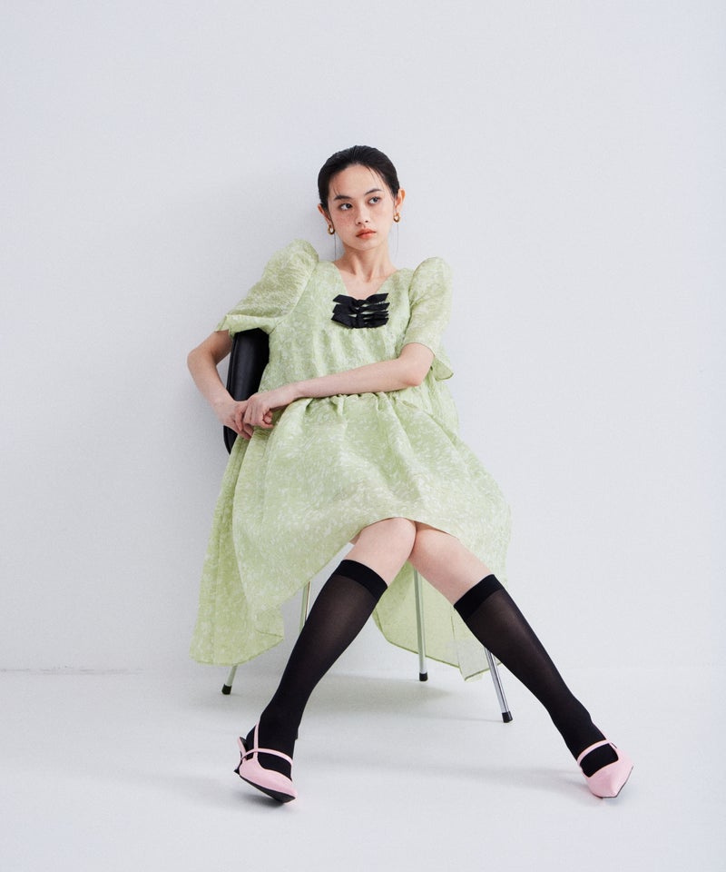 bubble sleeve jacquard dress
