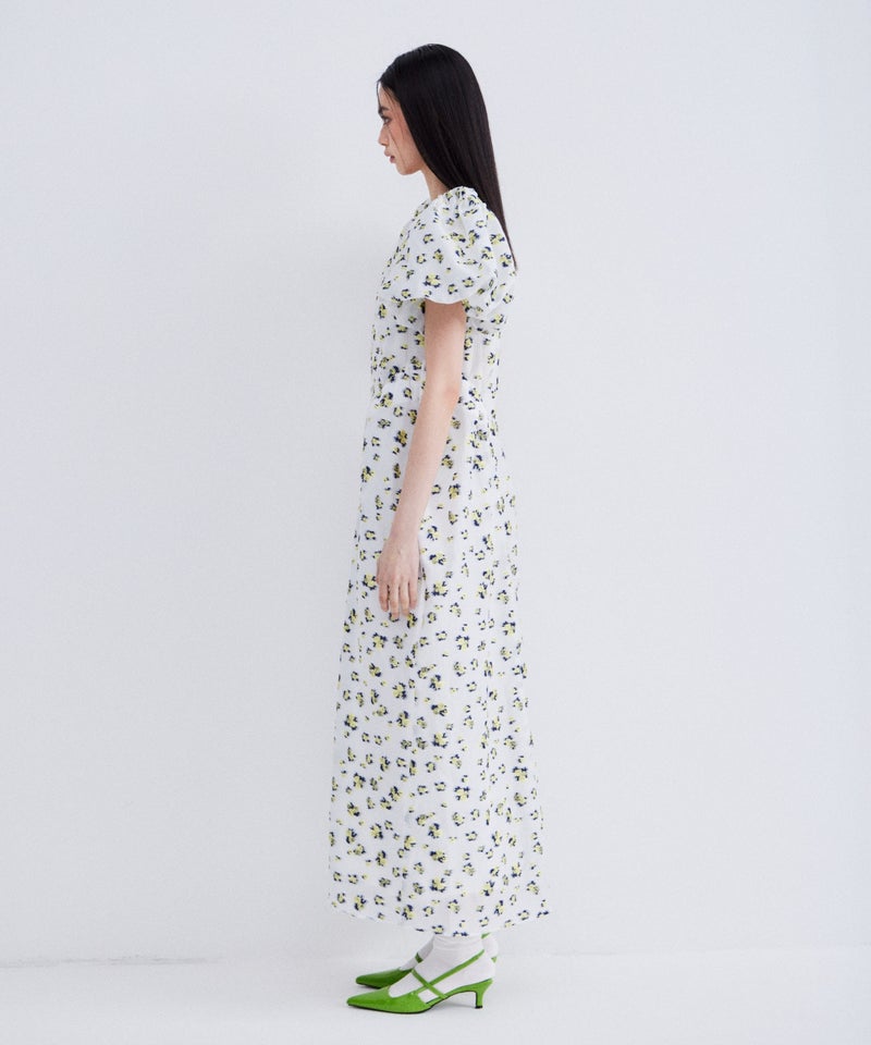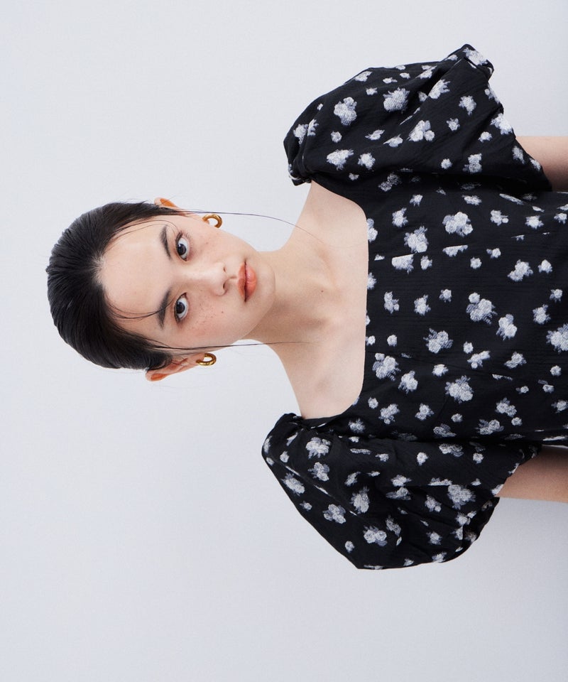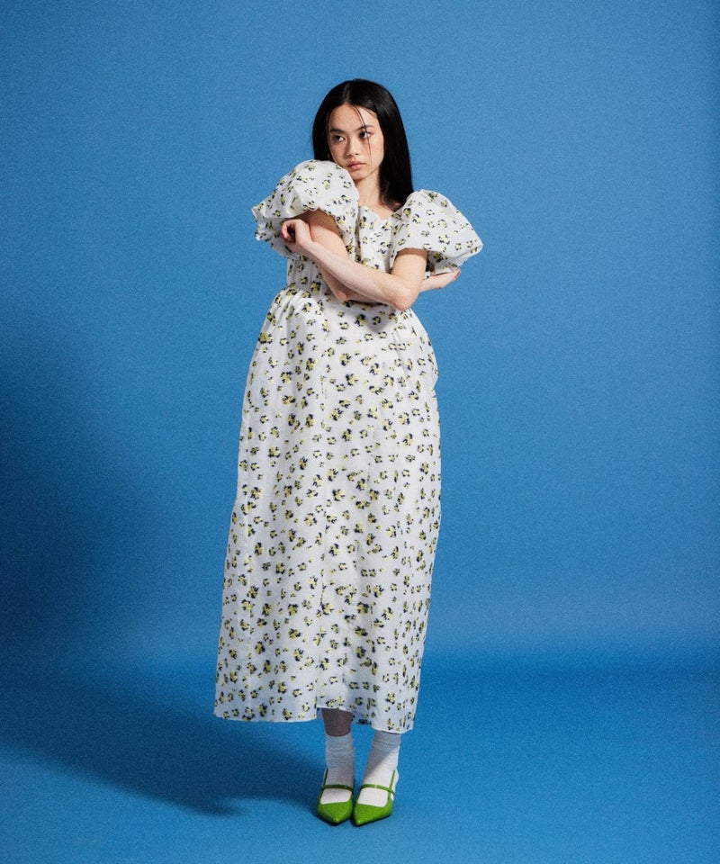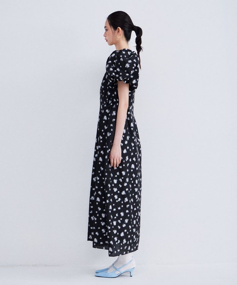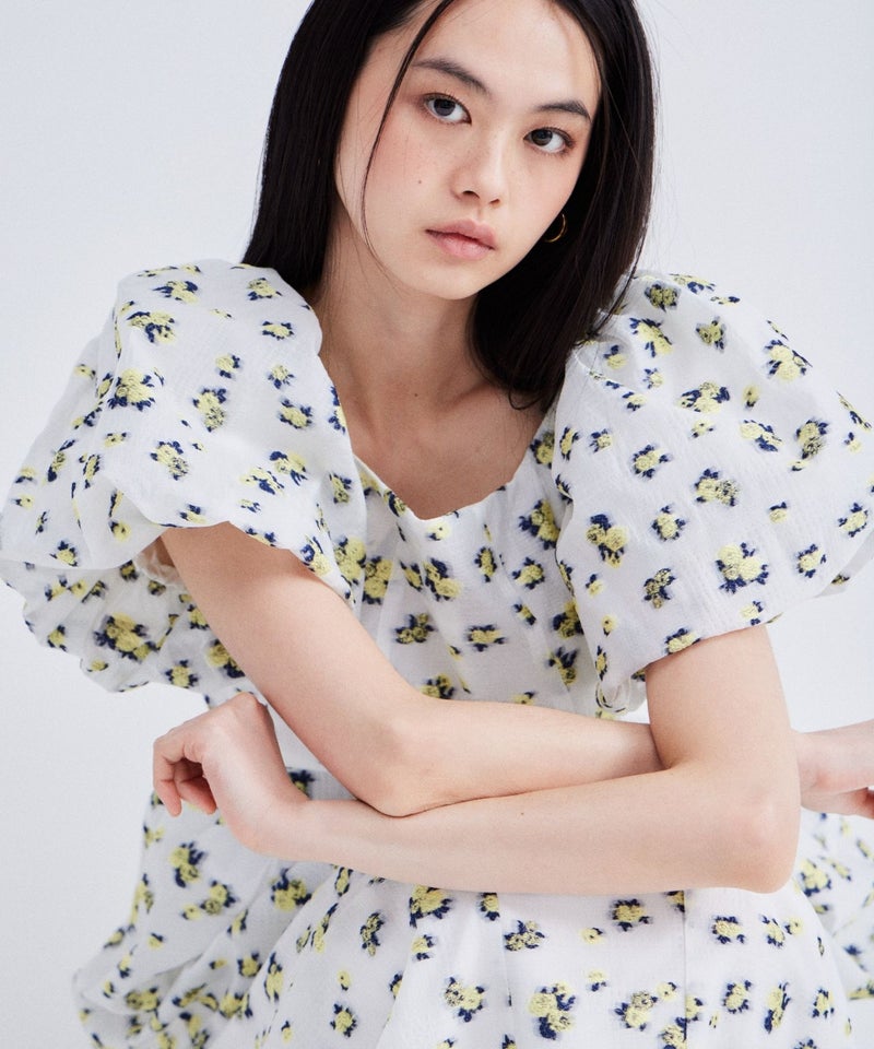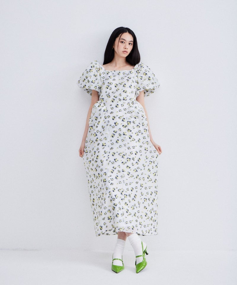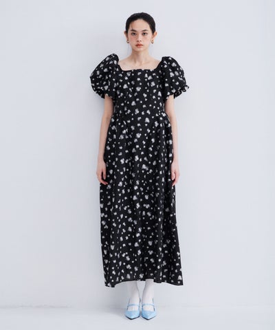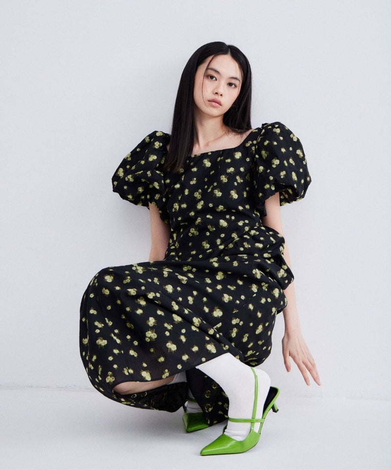 bubble sleeve jacquard dress