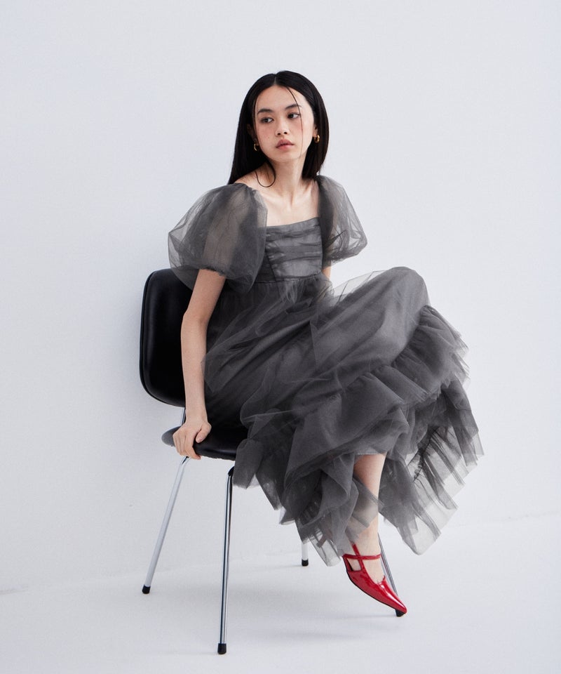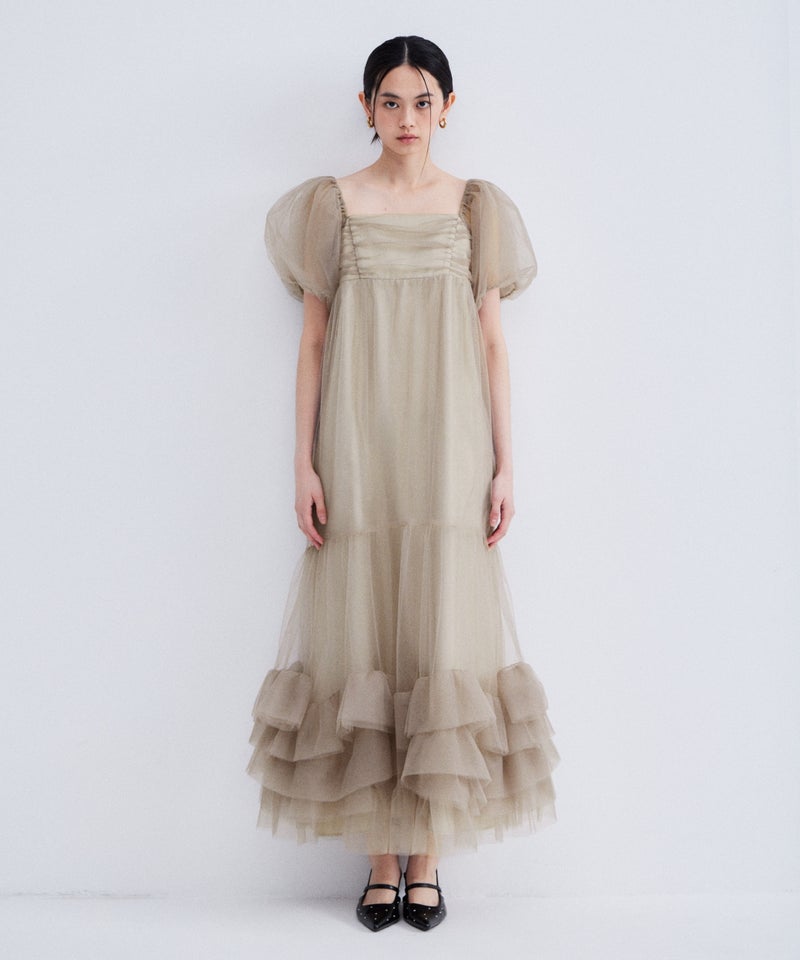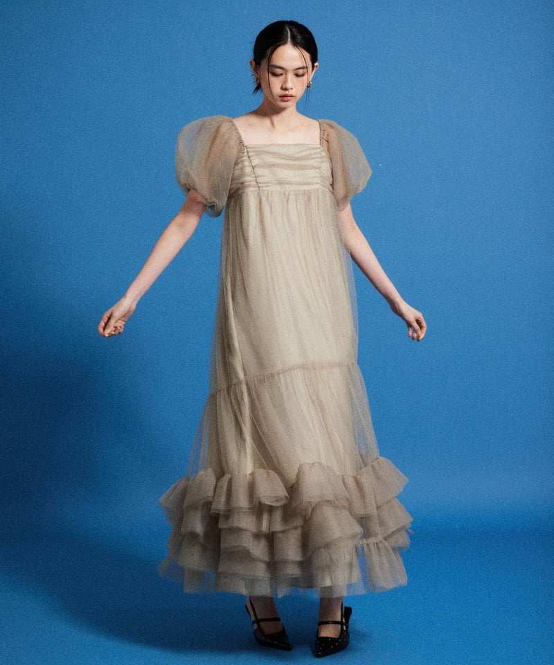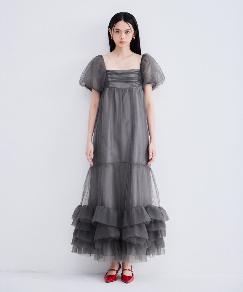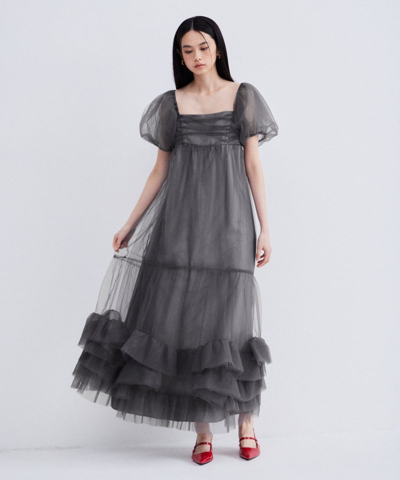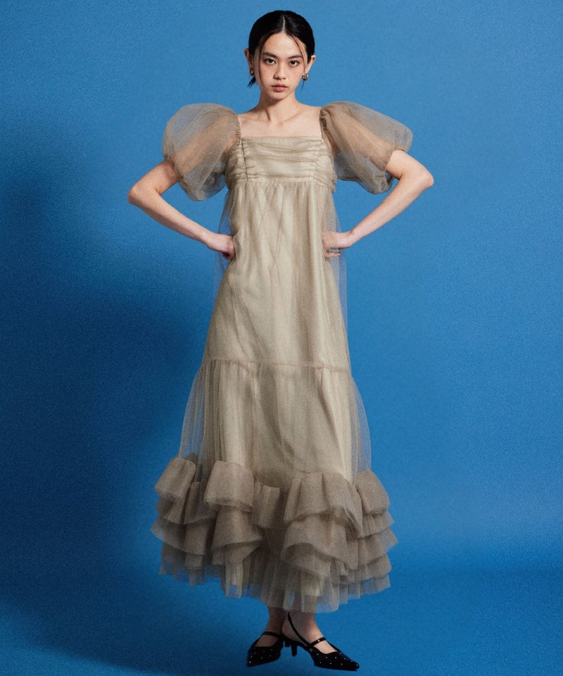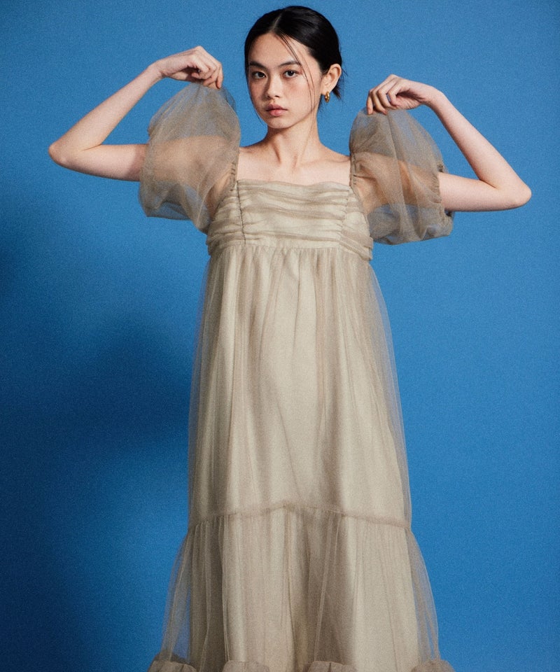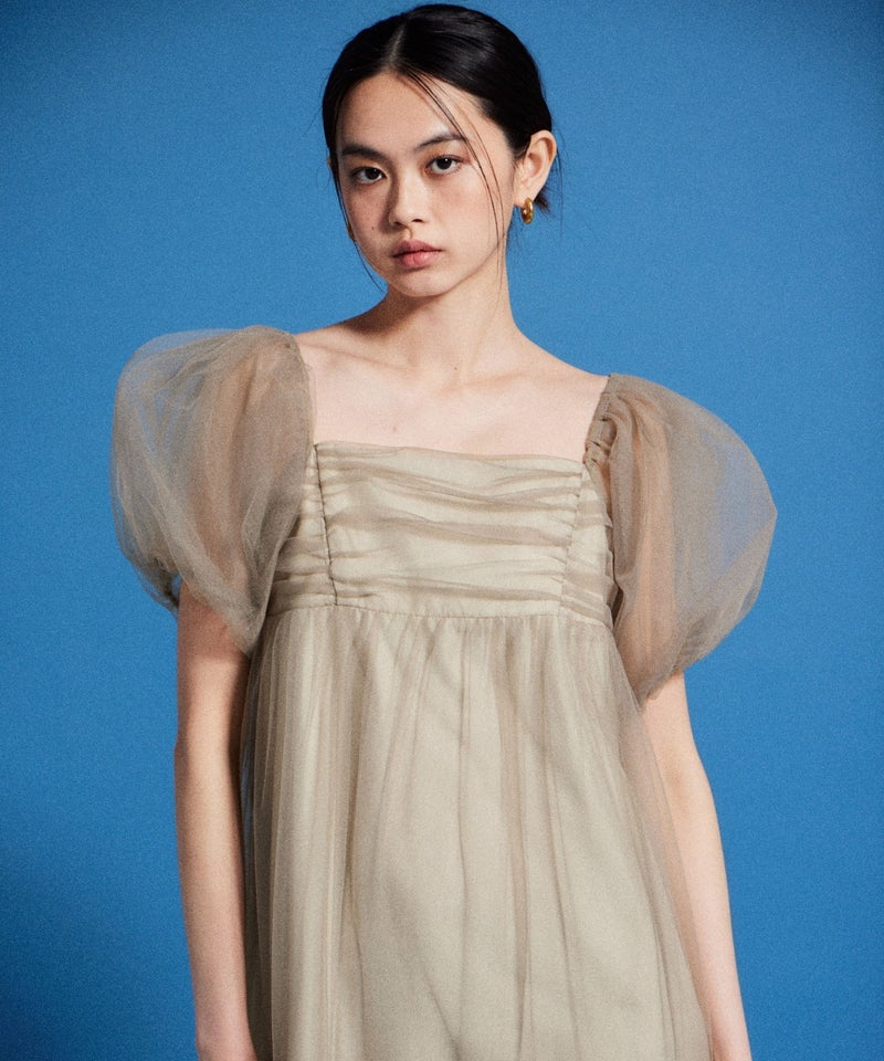 Volume Tulle Puff Sleeve Dress