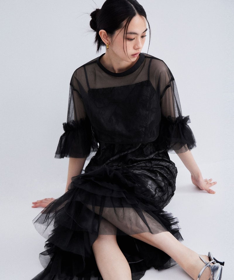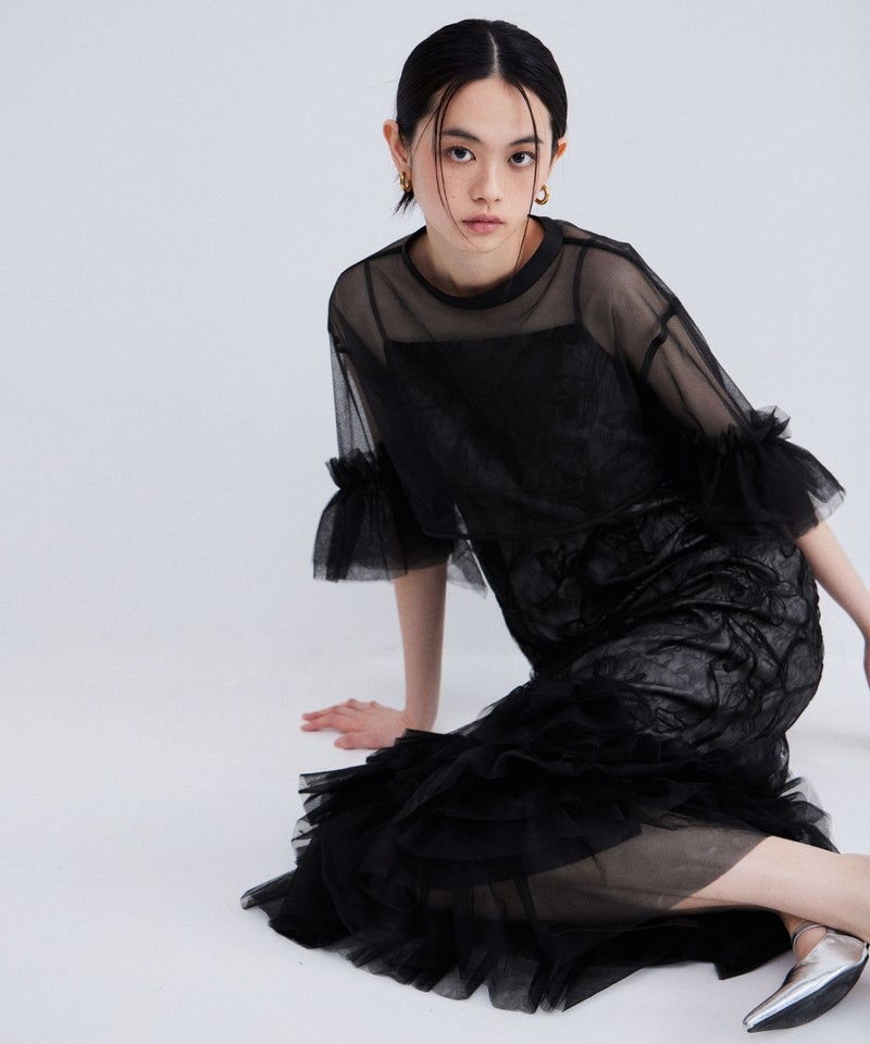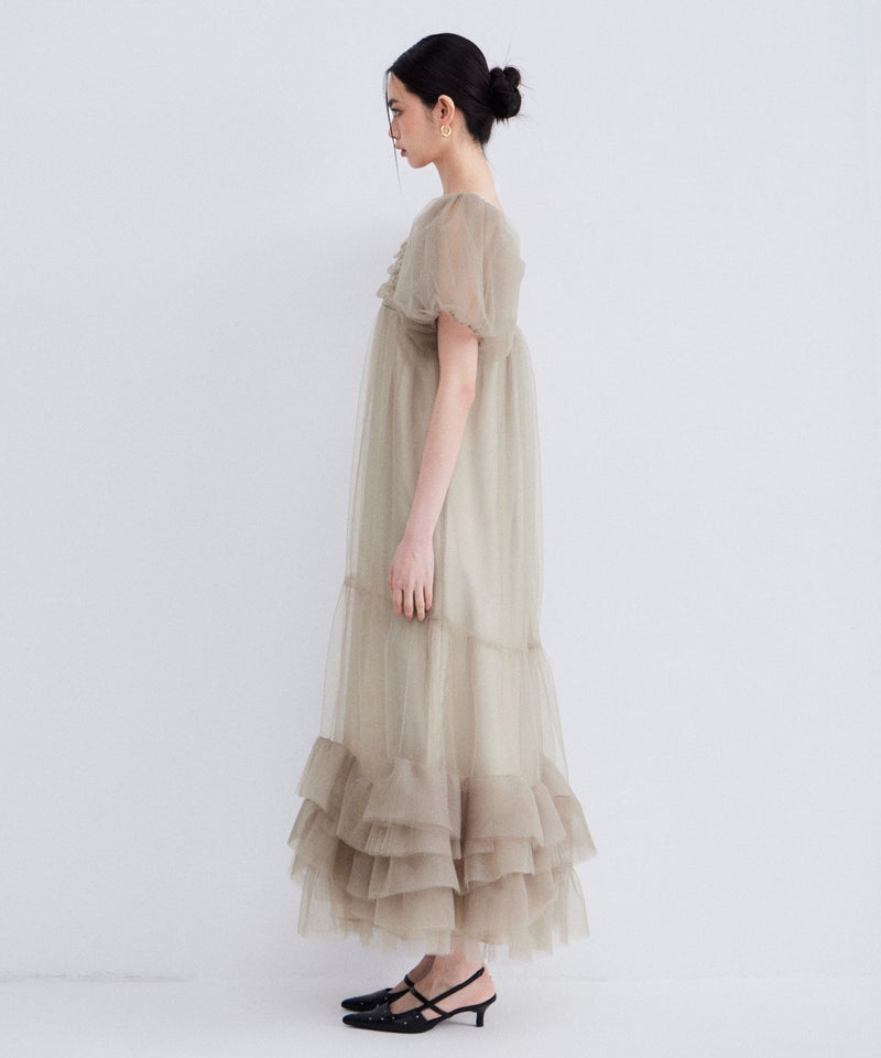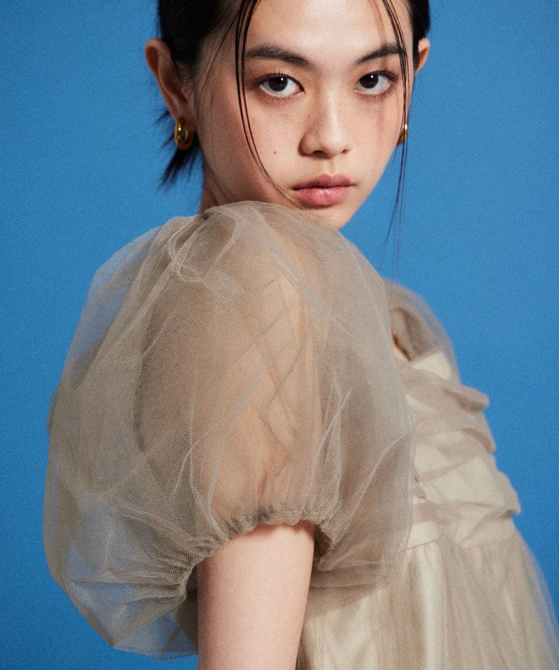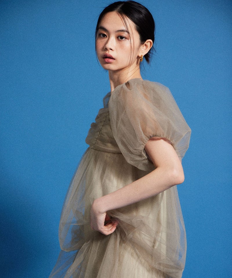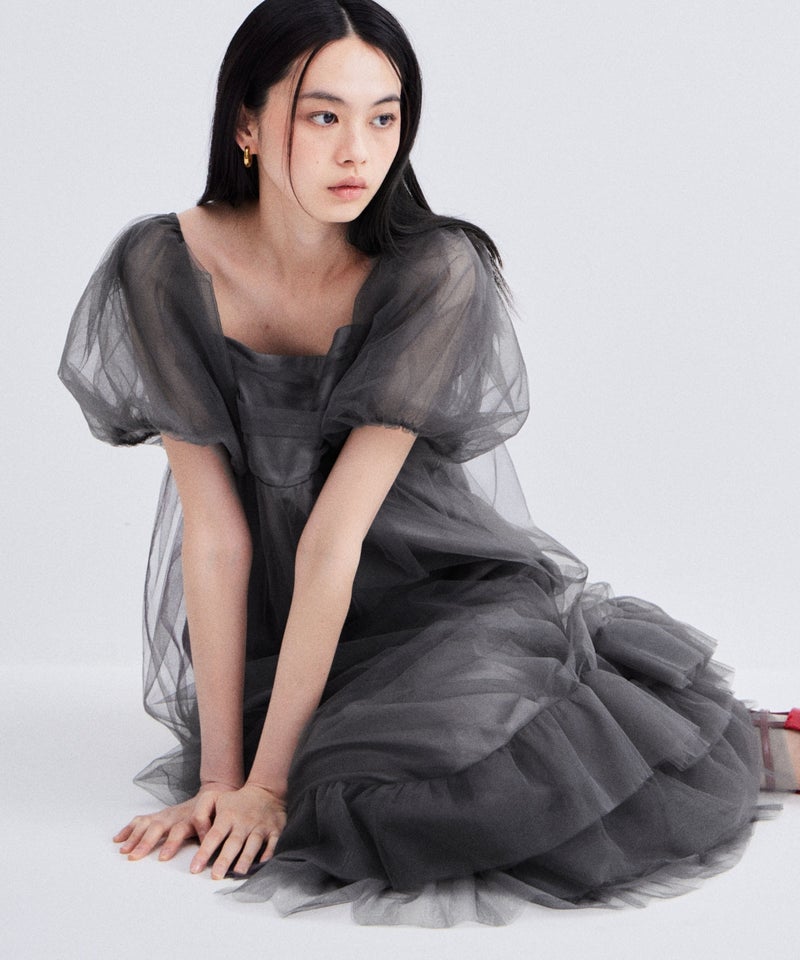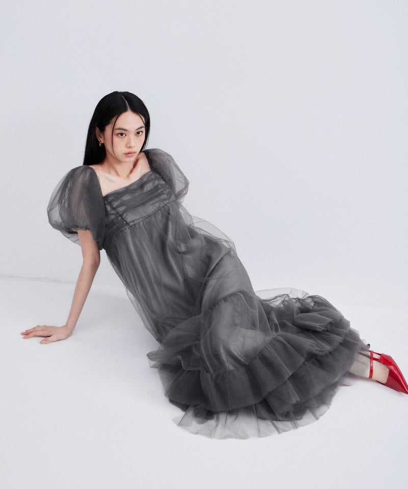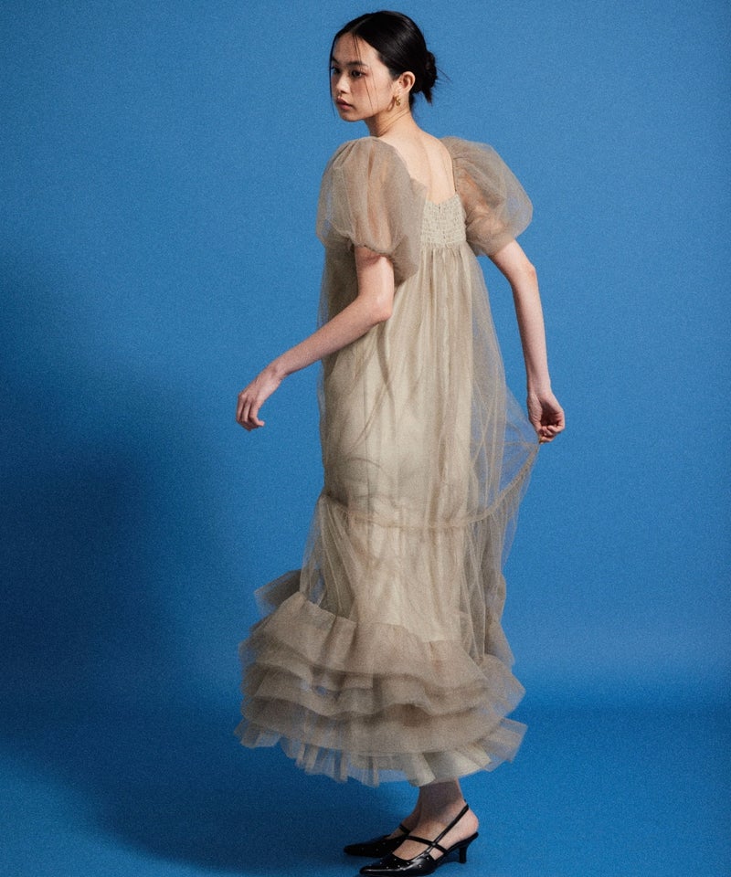Volume Tulle Puff Sleeve Dress