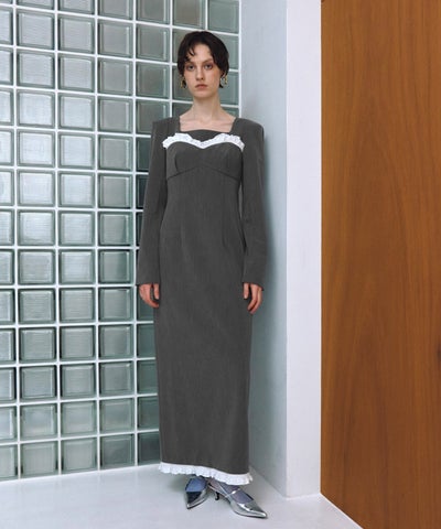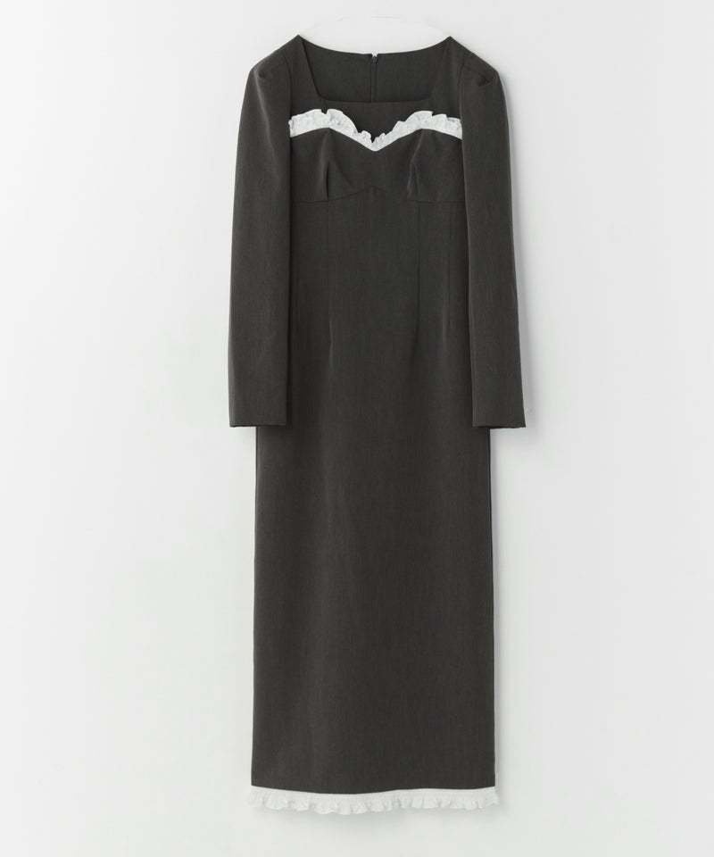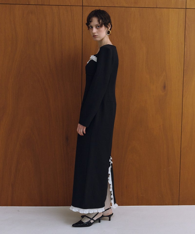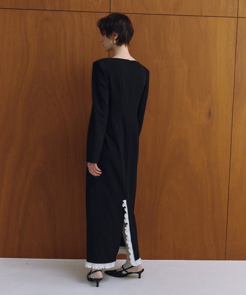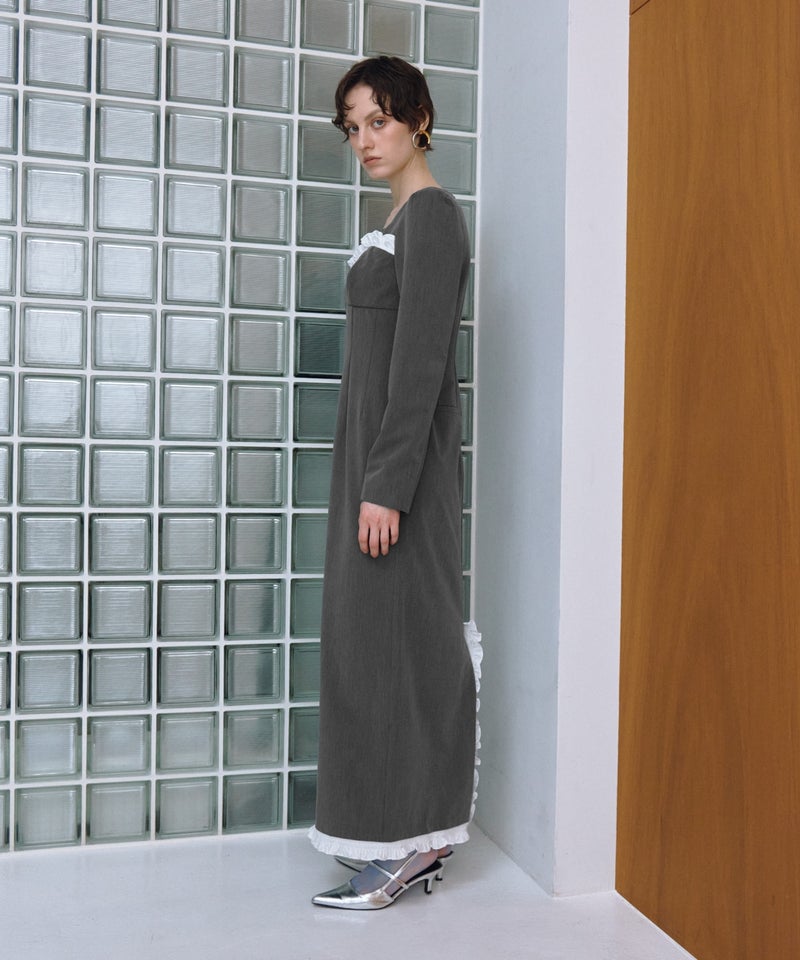 frills trim long dress