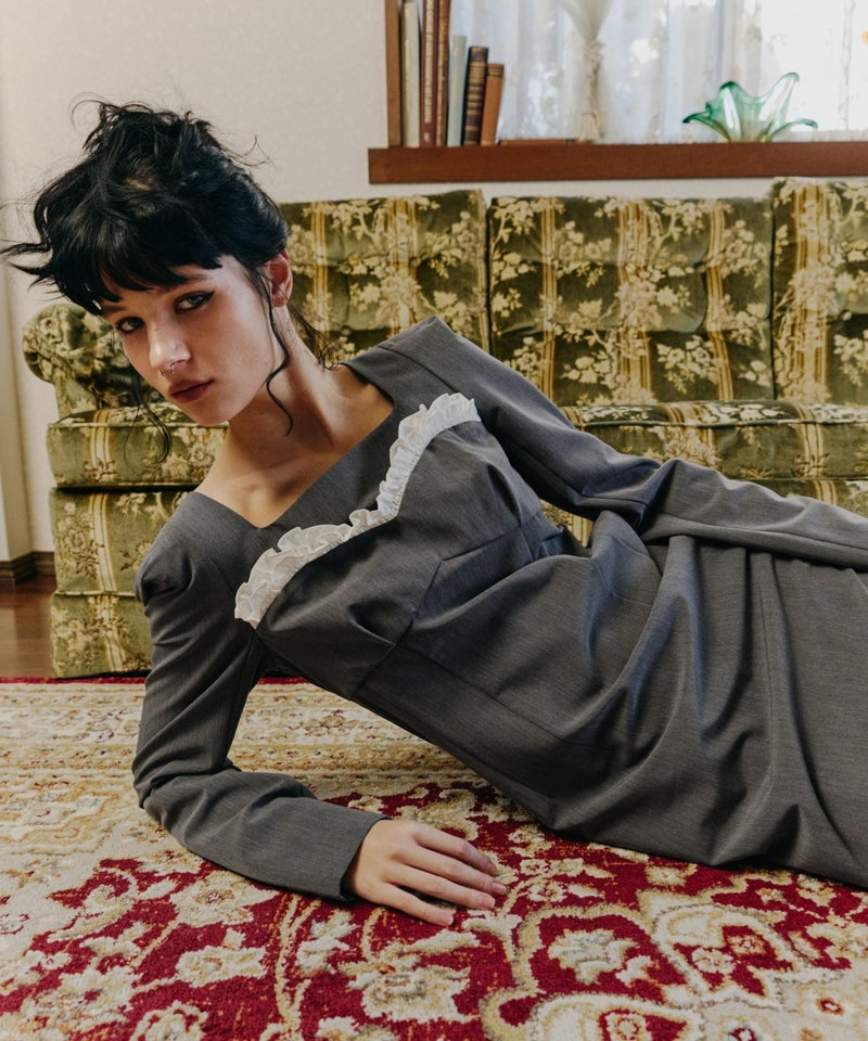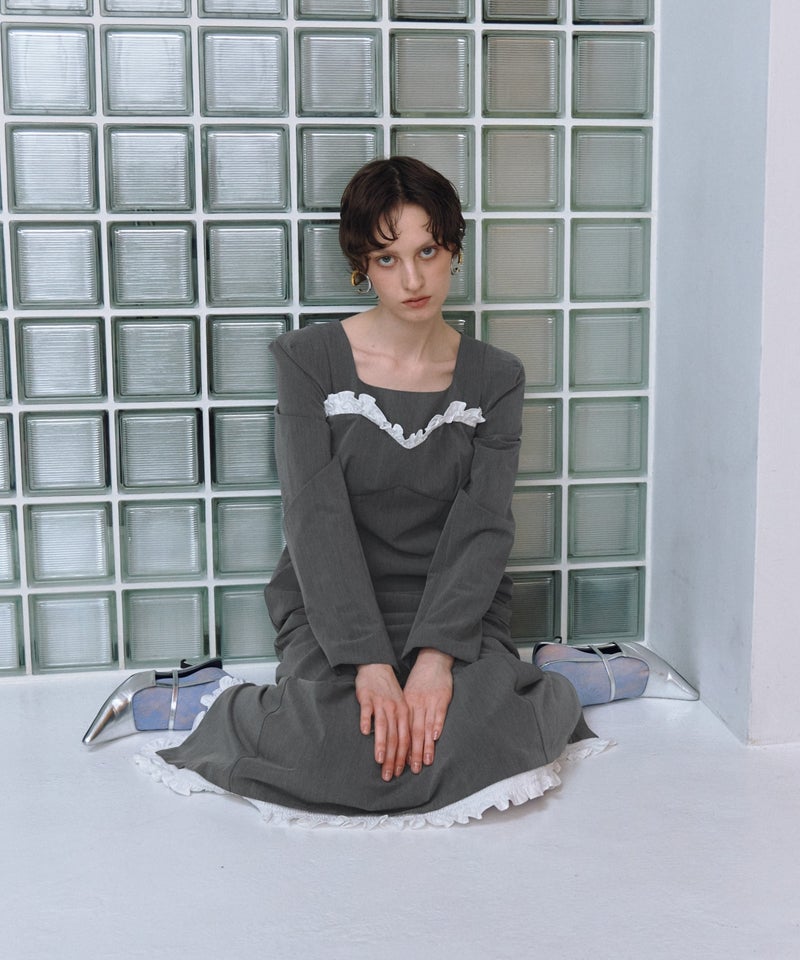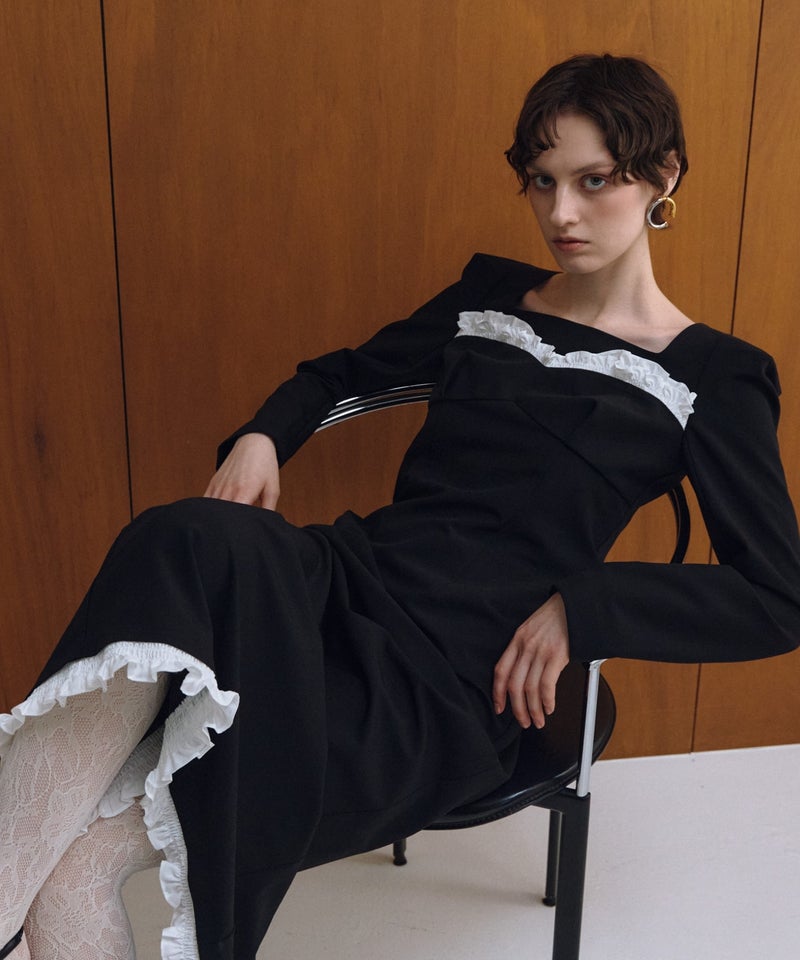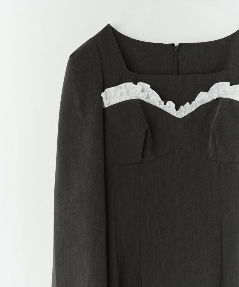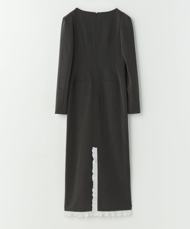 frills trim long dress