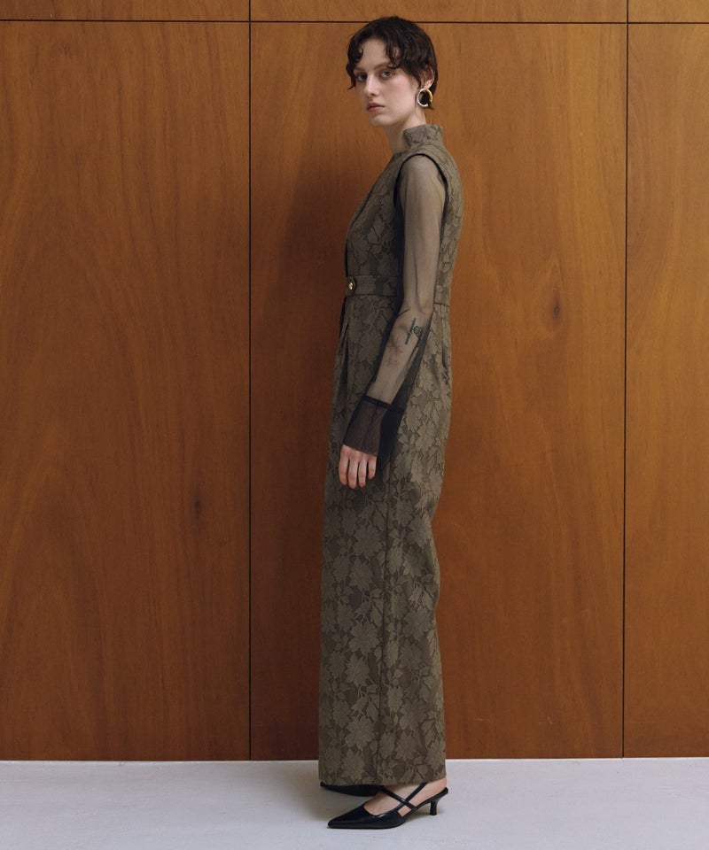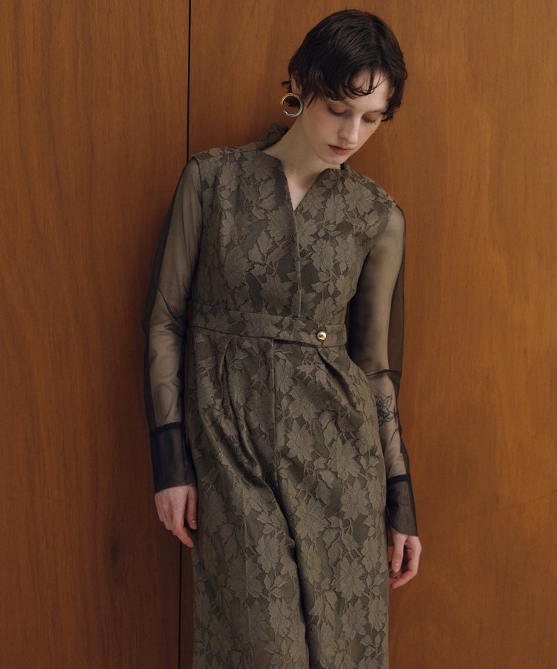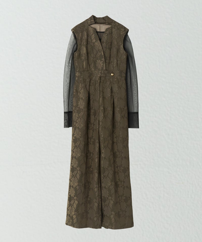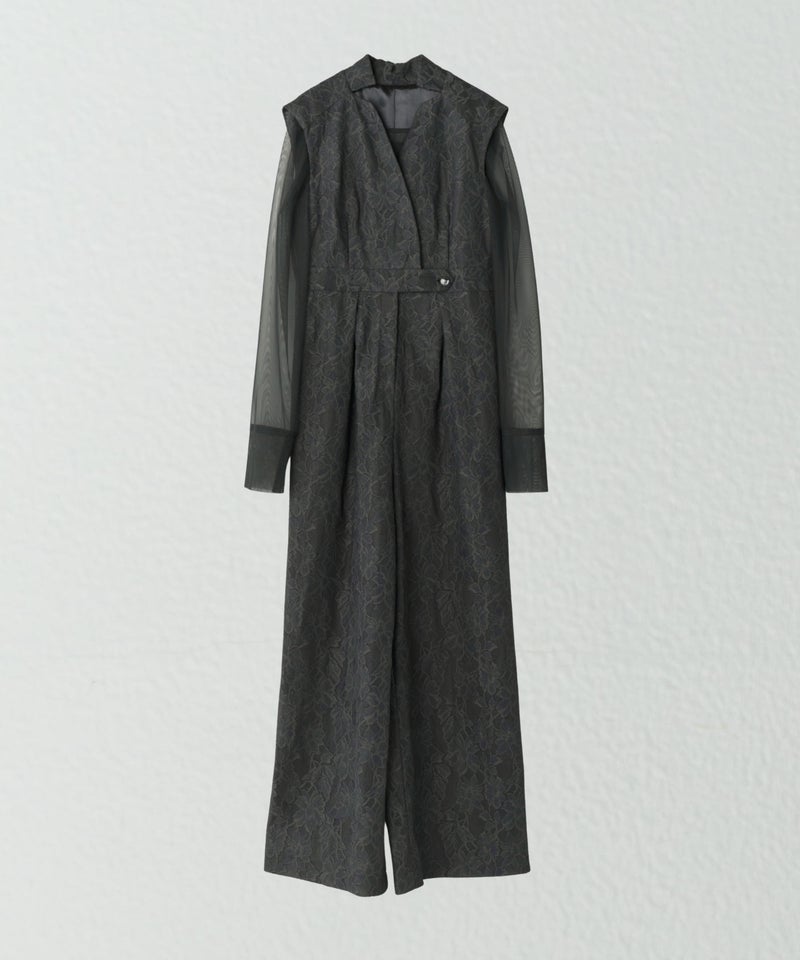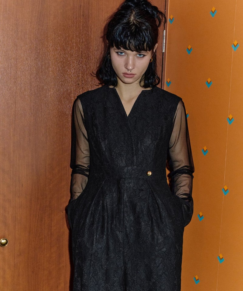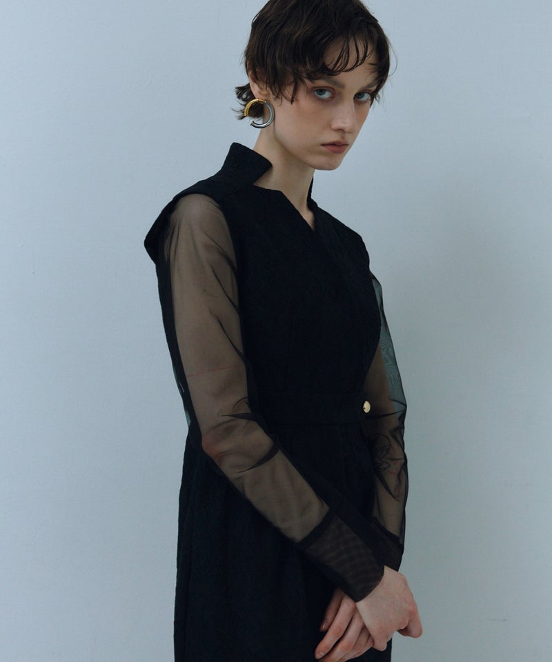 tulle drape jacquard dress